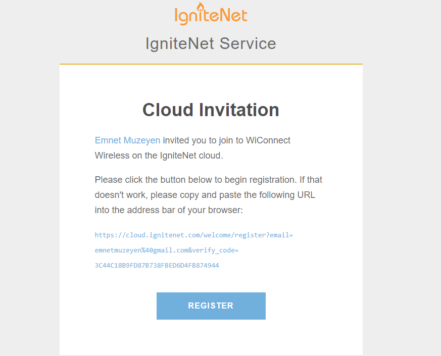- You will receive an email that says, “You’ve been invited to join the IgniteNet Cloud!”